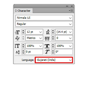 I am using InDesign CS6. I have the Gujarati language pack installed in Windows 10.