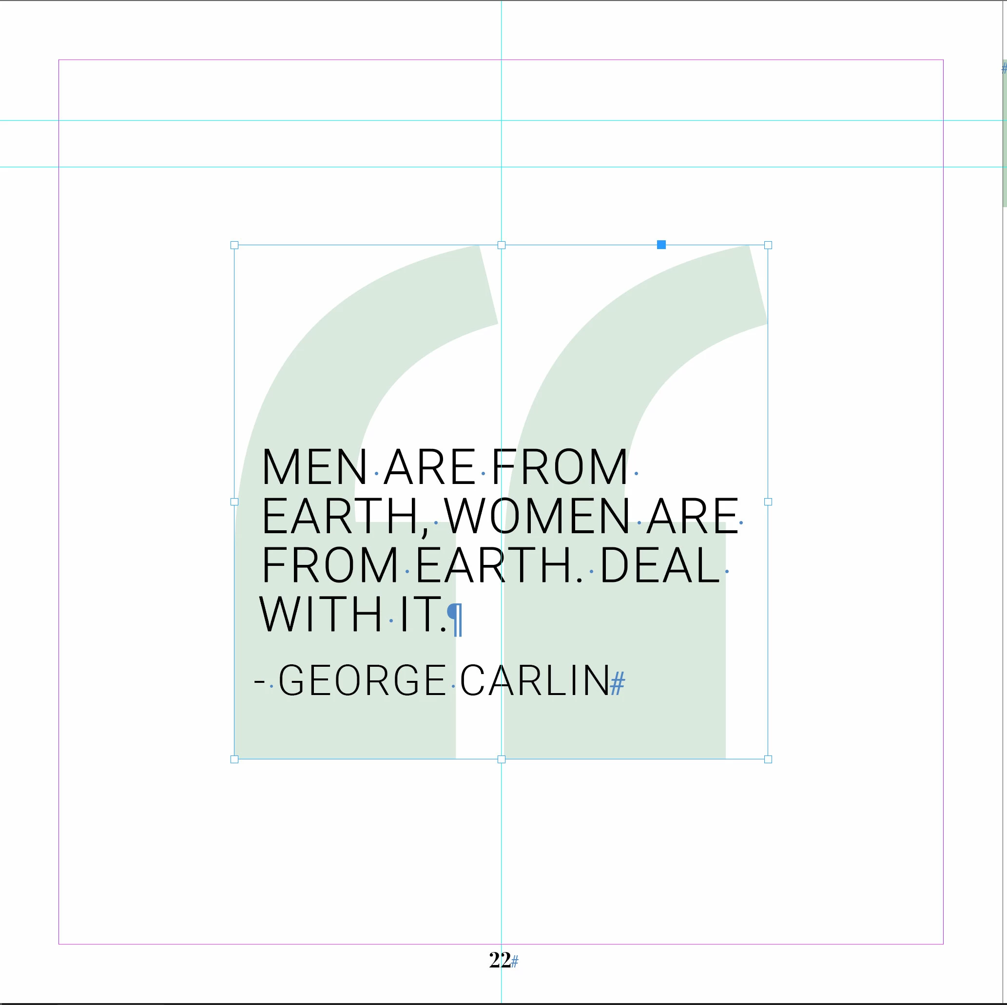 I inherited a book in Indesign to finish the project. There are these "quotes marks in green" on some pages (see attachment). They are not linked graphics and I can't highlight them as text. Please identify and help me to change the color of the quote marks.