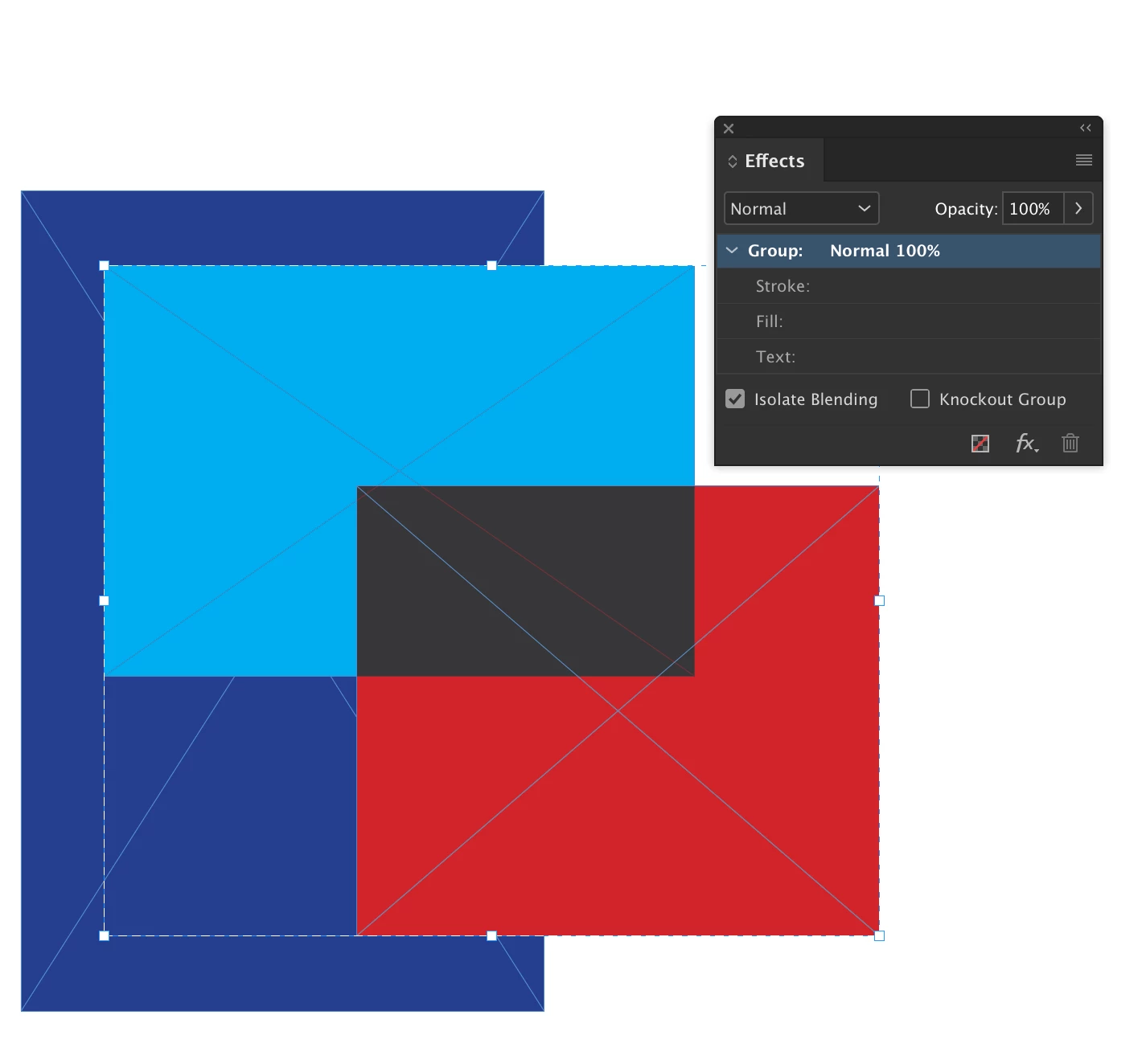 a) change the Transparency Blend Space to RBG --> no changes while changing the opacity of your rectangle.