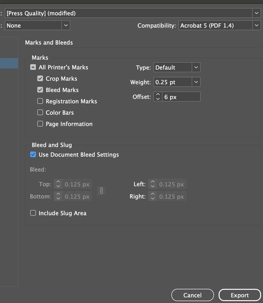 When exported and opened back up in Adobe Pro, NO BLEED BACKGROUNDS ARE SHOWING!!!