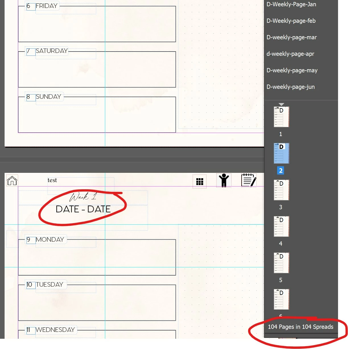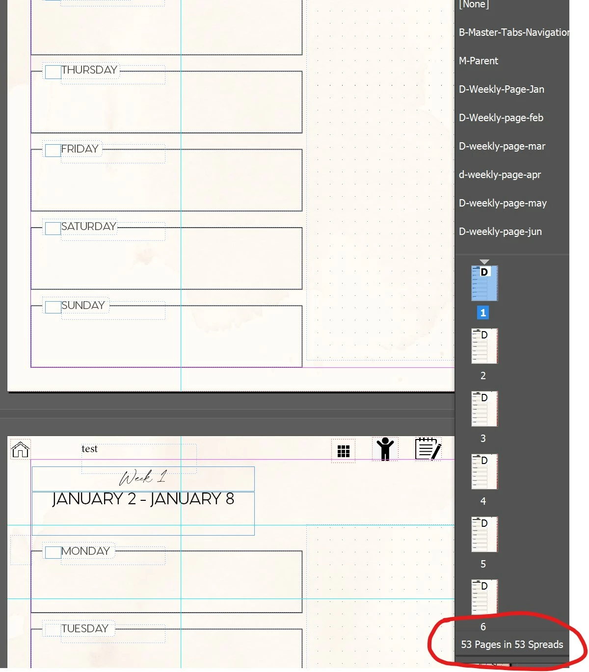 I'm trying to flow some text (date numbers) through some weekly calendar pages. Each page has a unique text in the header area which I populated with data merge. I set up the master with linked text boxes and when I copy/paste the date into the first text box on page 1, it flows through beautifully... except excel just duplicates the Parent page (with placeholder text) instead of actually flowing it through to the next page in the series. My 53 become 104, all flowing onto the parent/placeholder and leaving the rest of my dated pages empty. Screenshots attached.