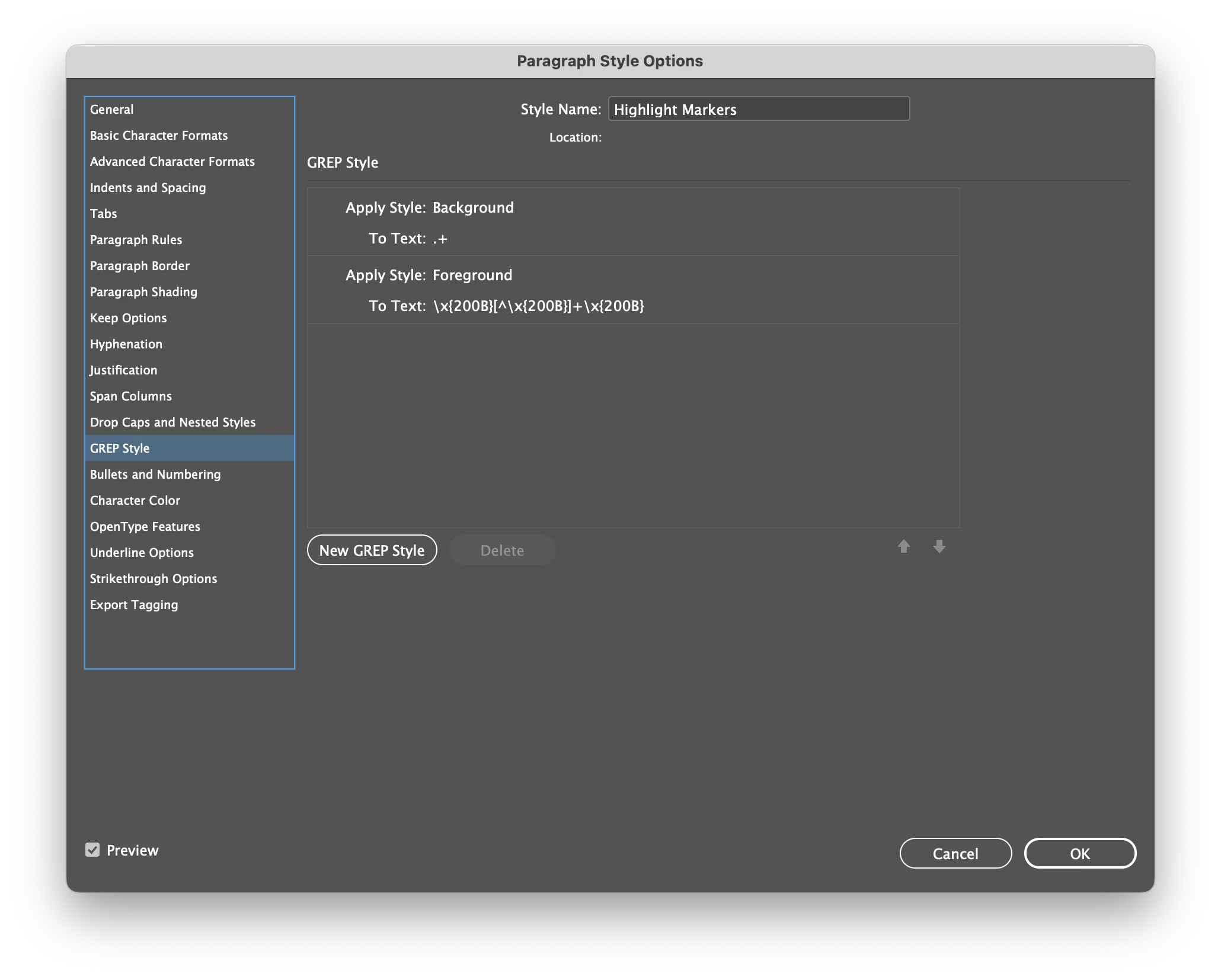 style with Grep Style "\x{200B}[^\x{200B}]+\x{200B}"