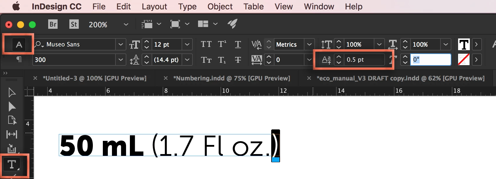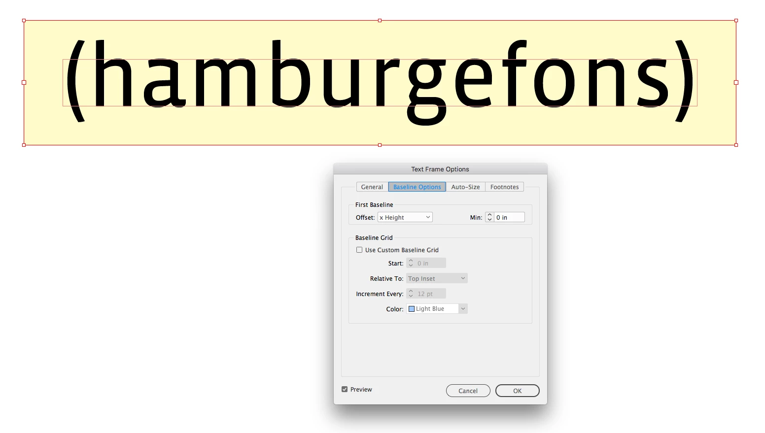 Horizontal alignment of two sizes of text in text frame (InDesign)