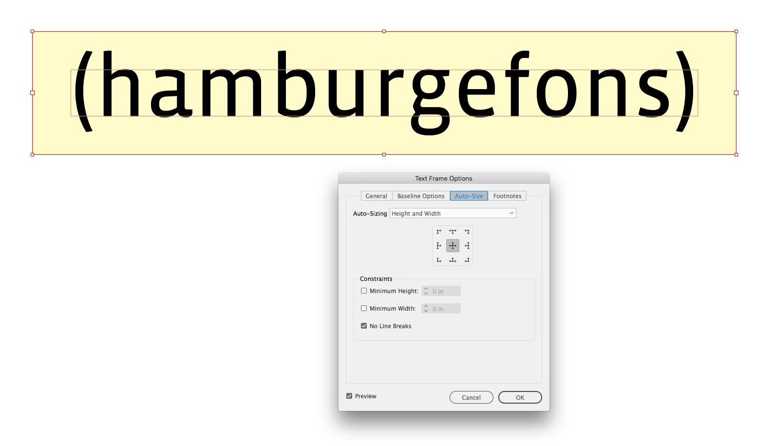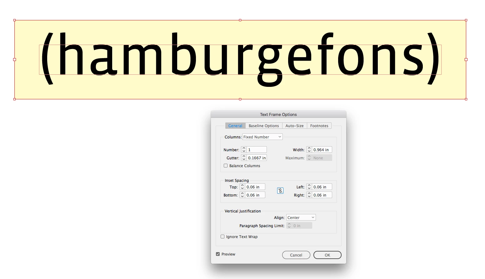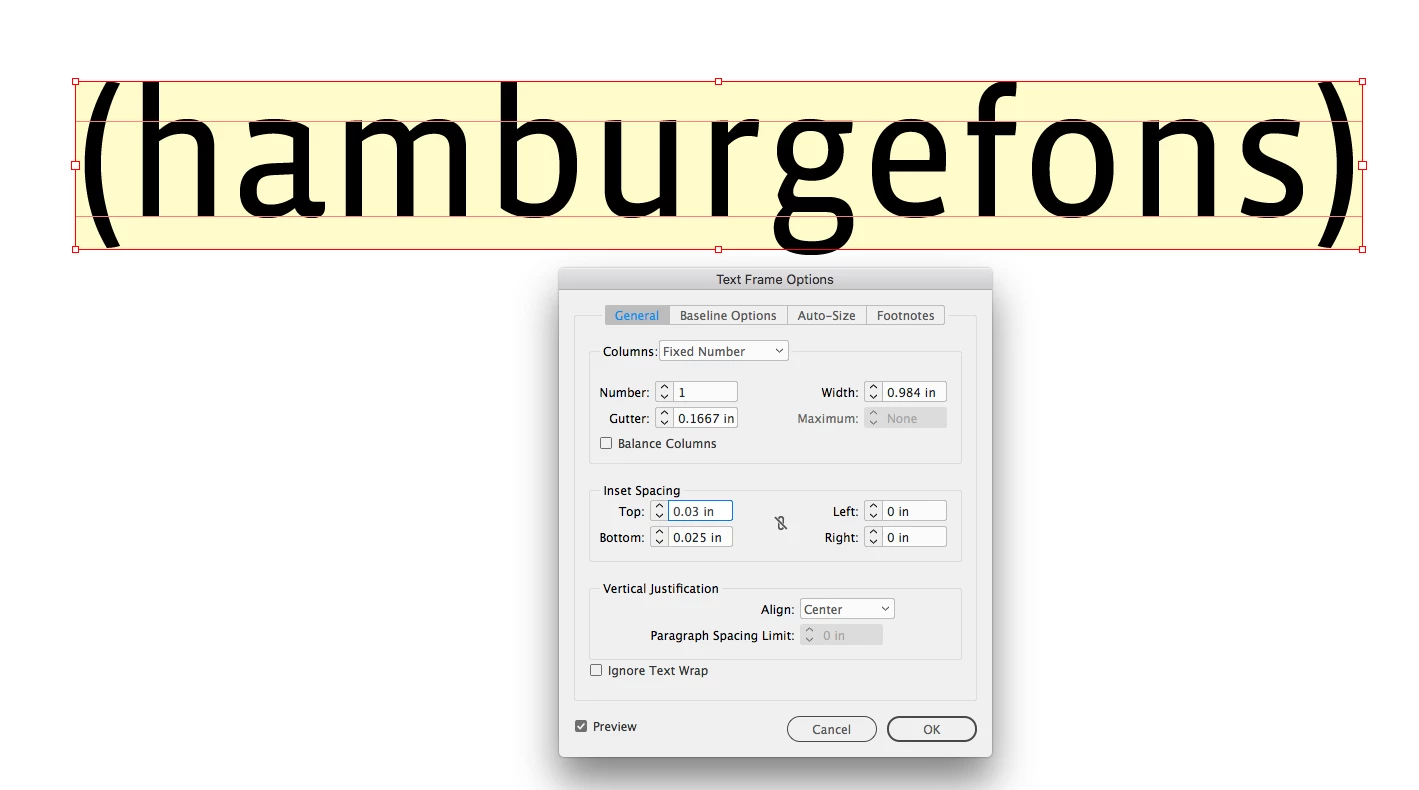 Hello everyone! So I seem to be having a problem with horizontal alignment within my text frame. I was hoping to find a easy way to align the center of all the text horizontally (as you can see mainly with the ( ) - they are hanging below the "L" instead of centered. I have my frame options set to center. to auto size height and width. I have attached screen shots below.