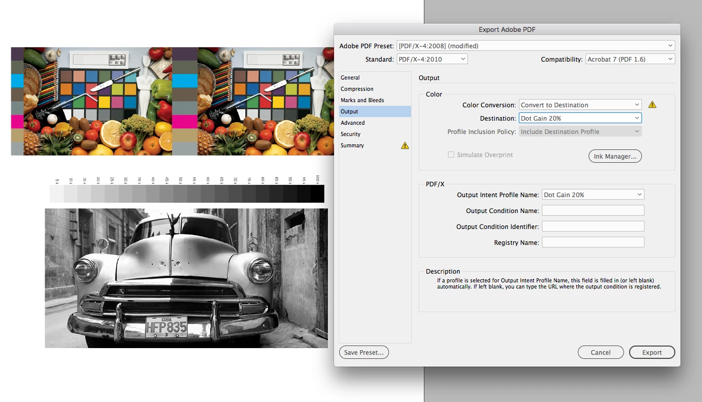 2. On pdfs where C,M,Y or RGB values are contained I've been using a variety of the Dot Gain profiles including Dot Gain 10% to get a richer black so the ad doesn't appear faded once it's in grayscale. I've heard the norm is Dot Gain 20%. Will using Dot Gain 10% cause any problem when the converted pdf is placed into InDesign and then exported as CMYK and sent to the printer?