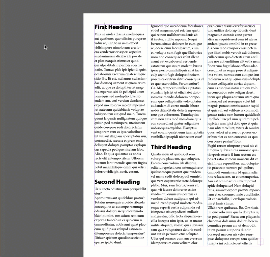 How can I create paragraph styles with the headings - each on different column (split to 3) with text under each?
