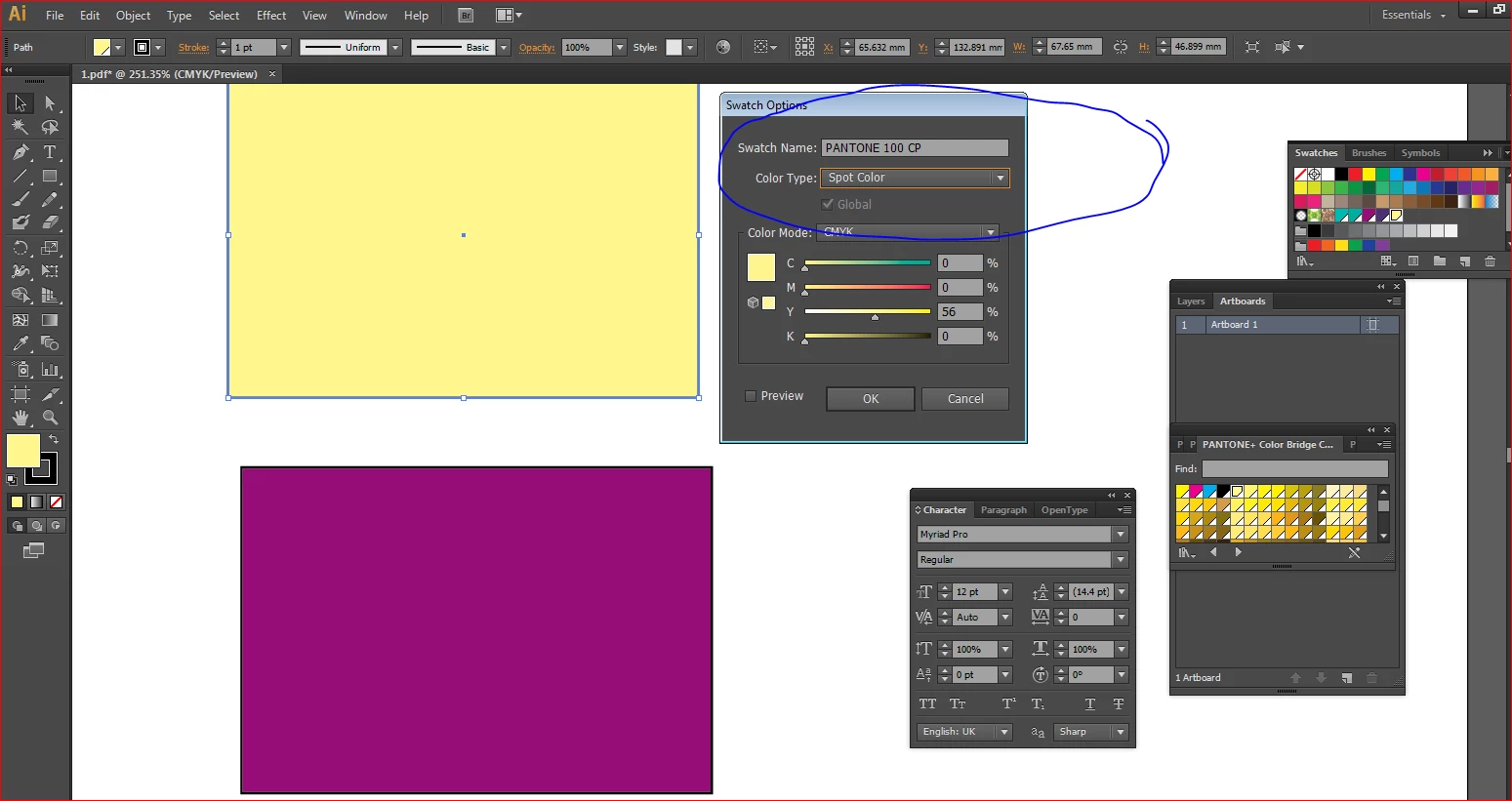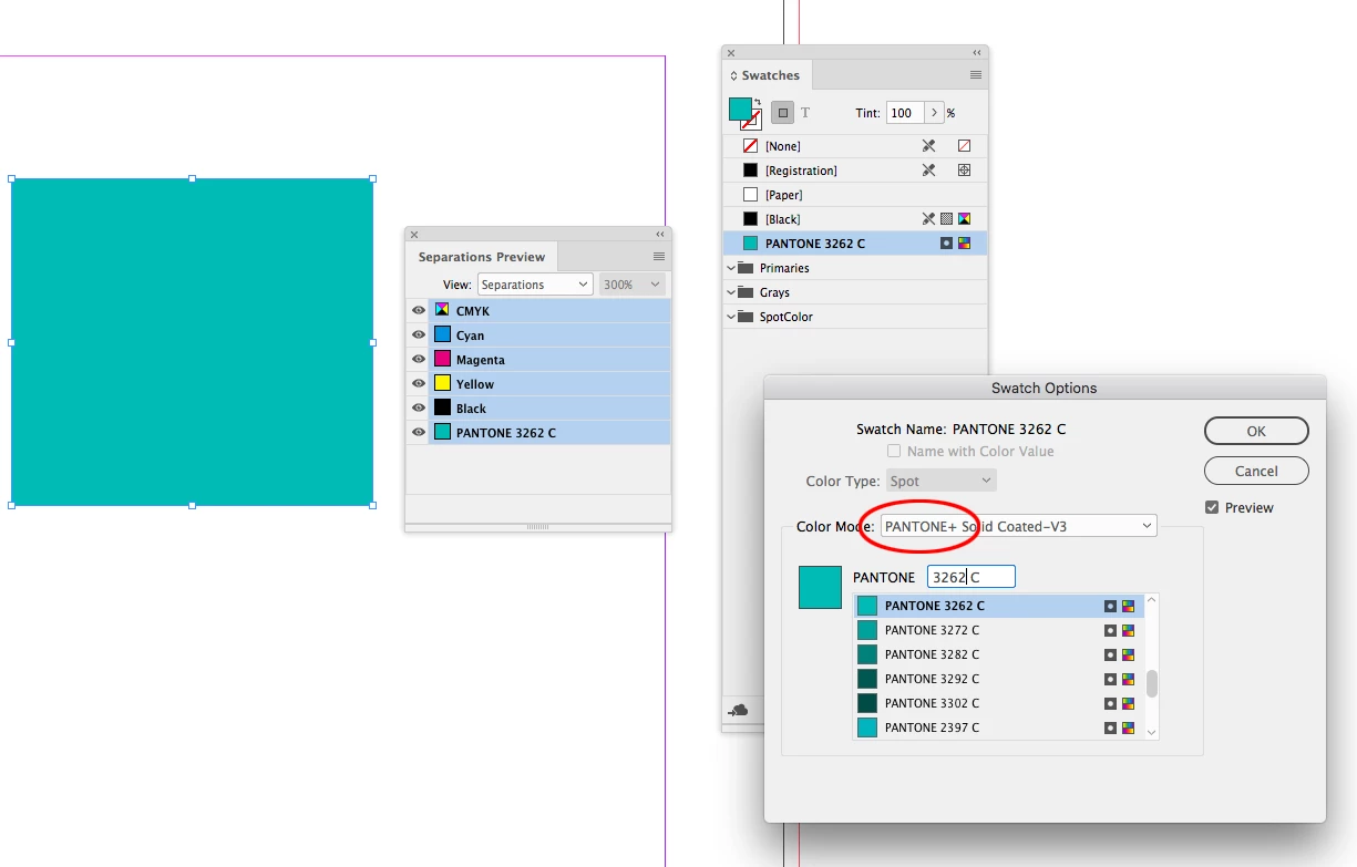 I used two types of pantone colors in my InDesign file as shown below: