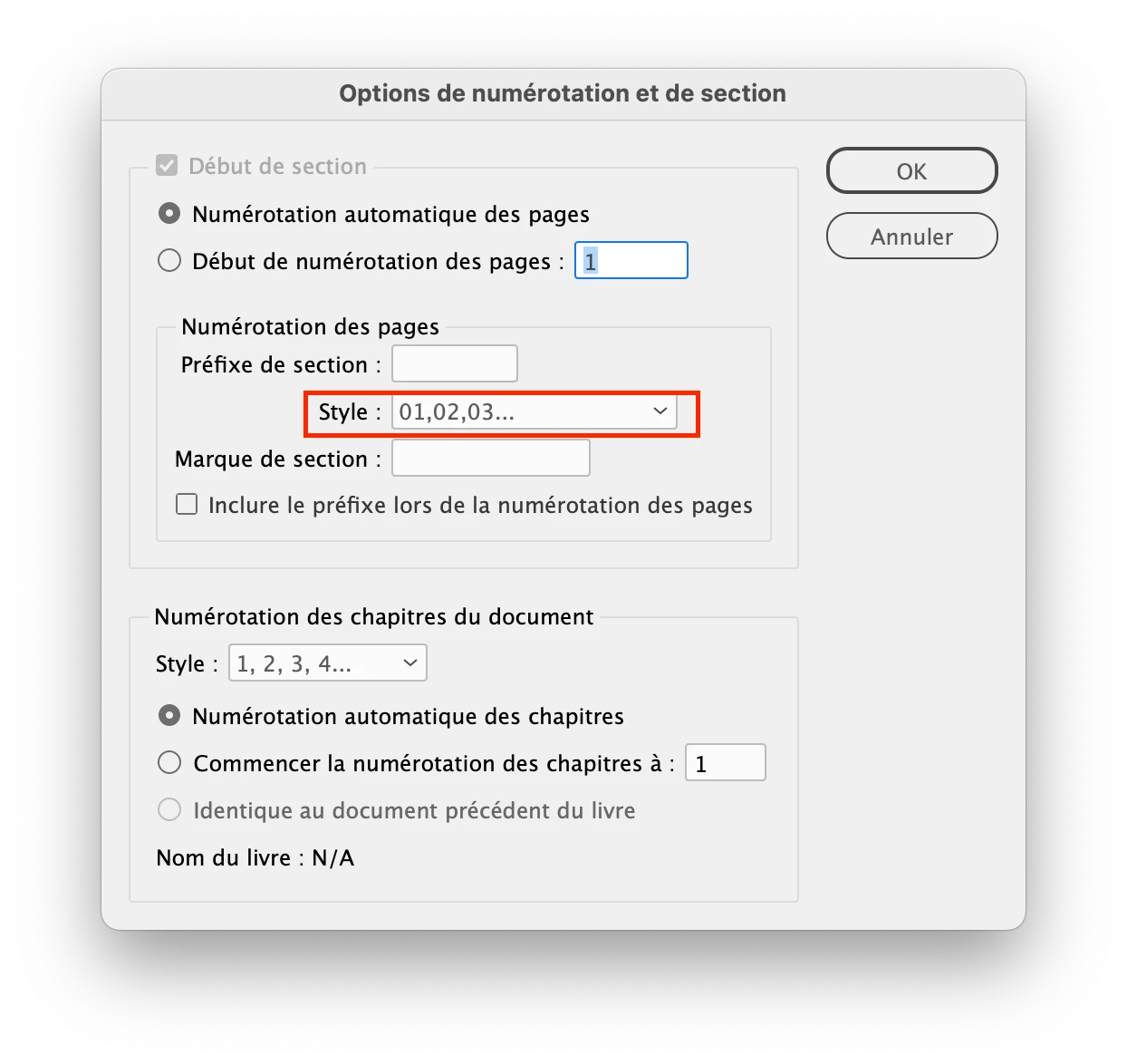 I use a master page for page numbering, and I format it as '0A.' It works fine for single-digit numbers, but when it reaches page 10, it displays as '010.' How can I ensure it continues as two digits instead of three?