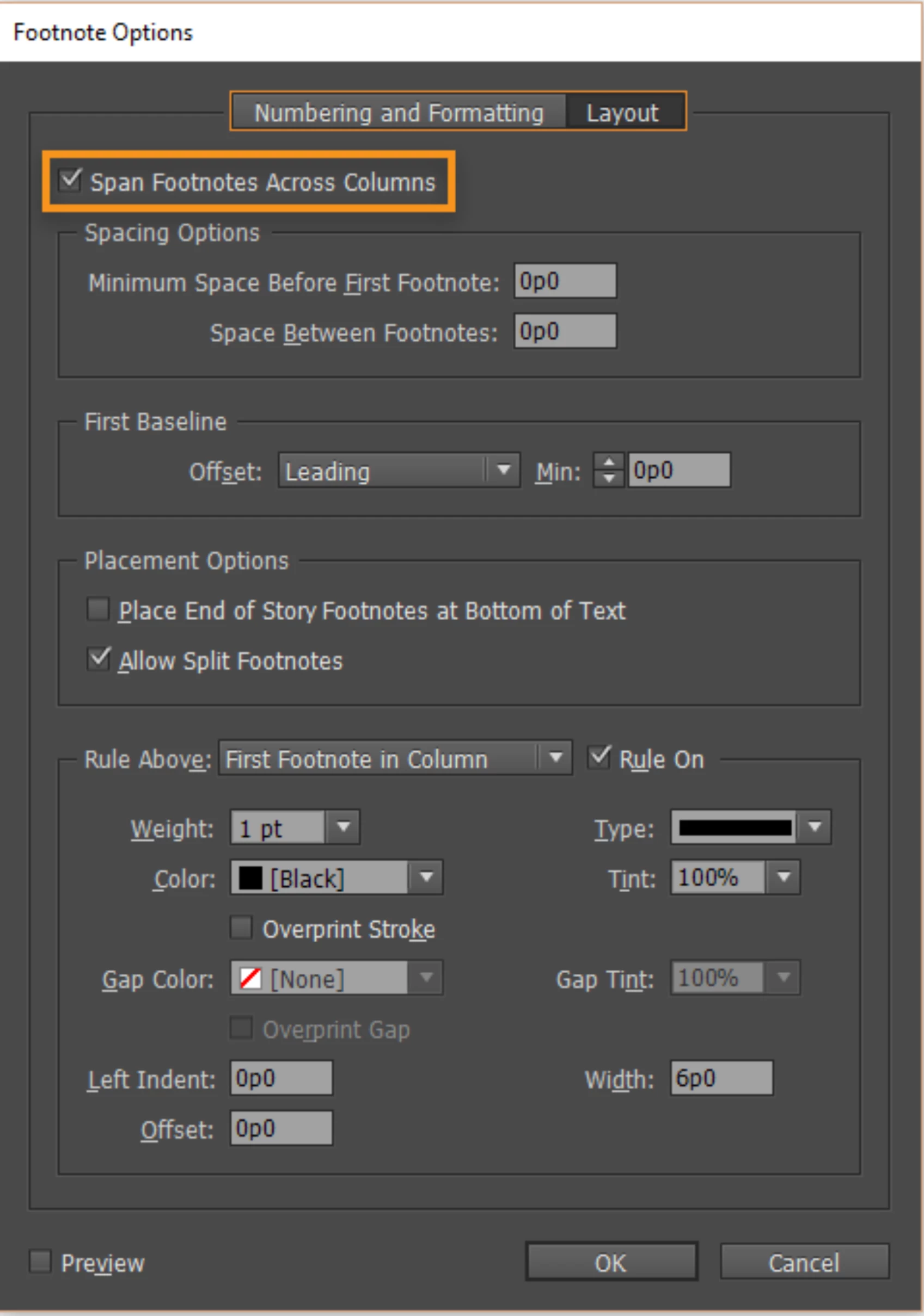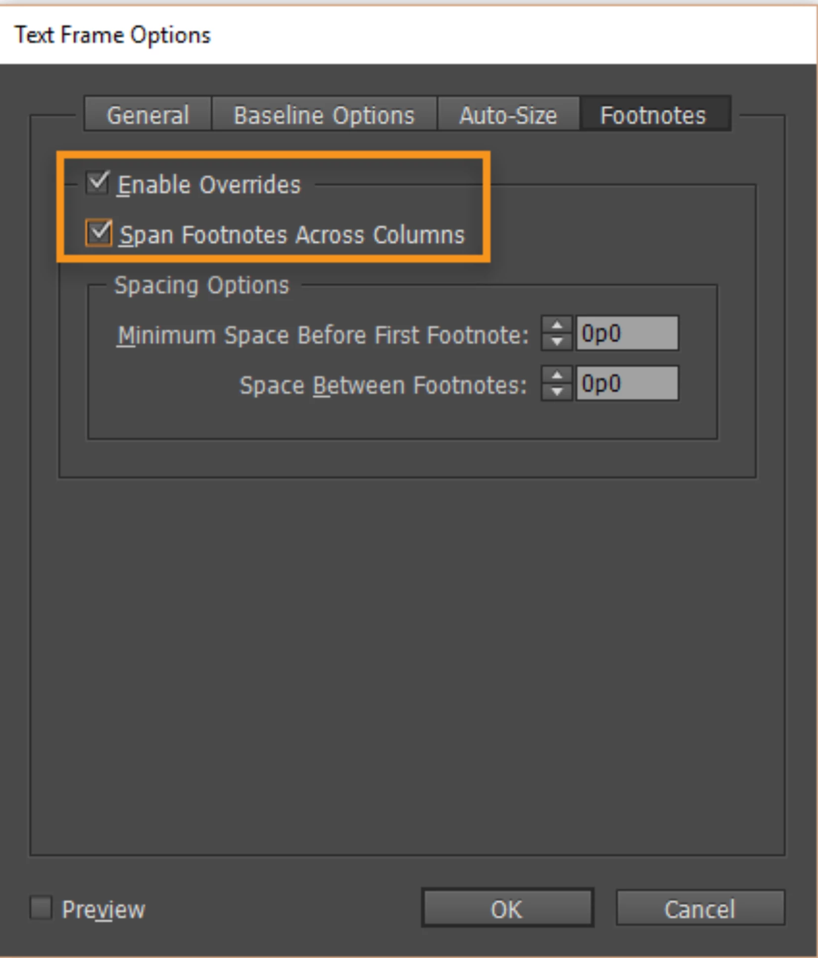 *This applies to all footnotes, but you can set it on separate frames when you want