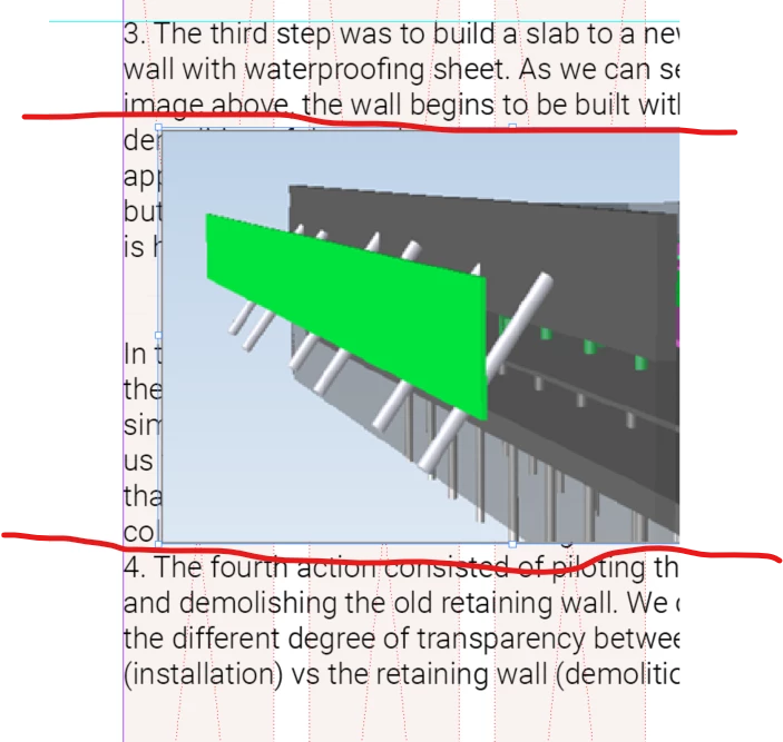 How can I set the settings of my image frame to move the text out of the zone I have between the two read lines ?