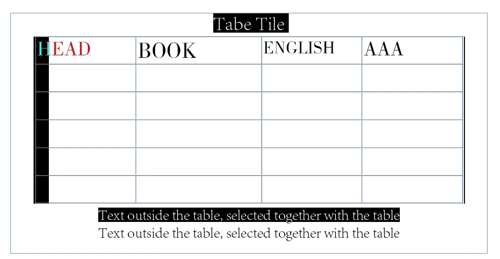 Situation 1: When the cursor is outside the table