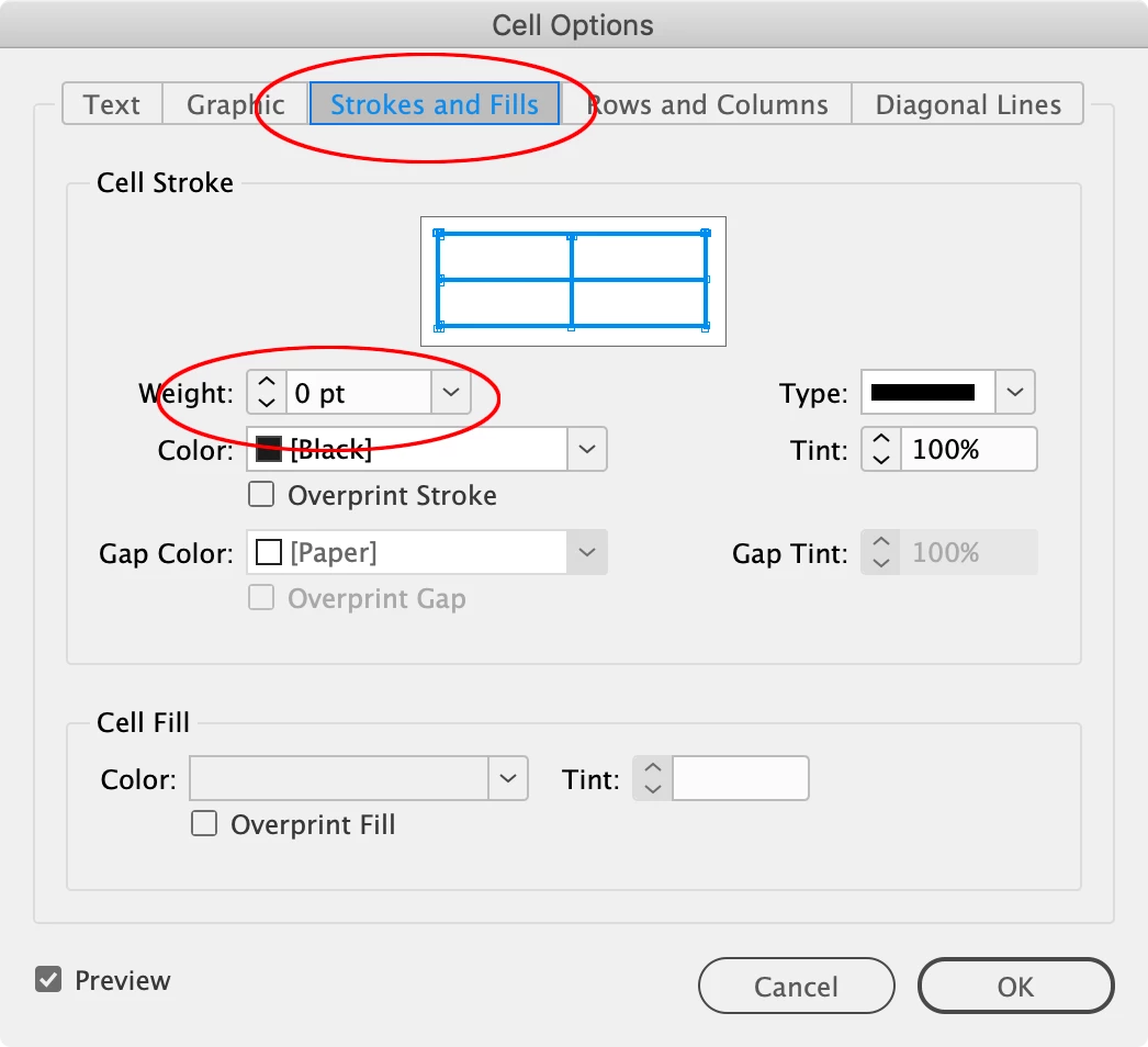 Hi @James3669094303ct , With your table selected choose Table>Cell Options>Strokes and Fills..., and set the strokes to 0: