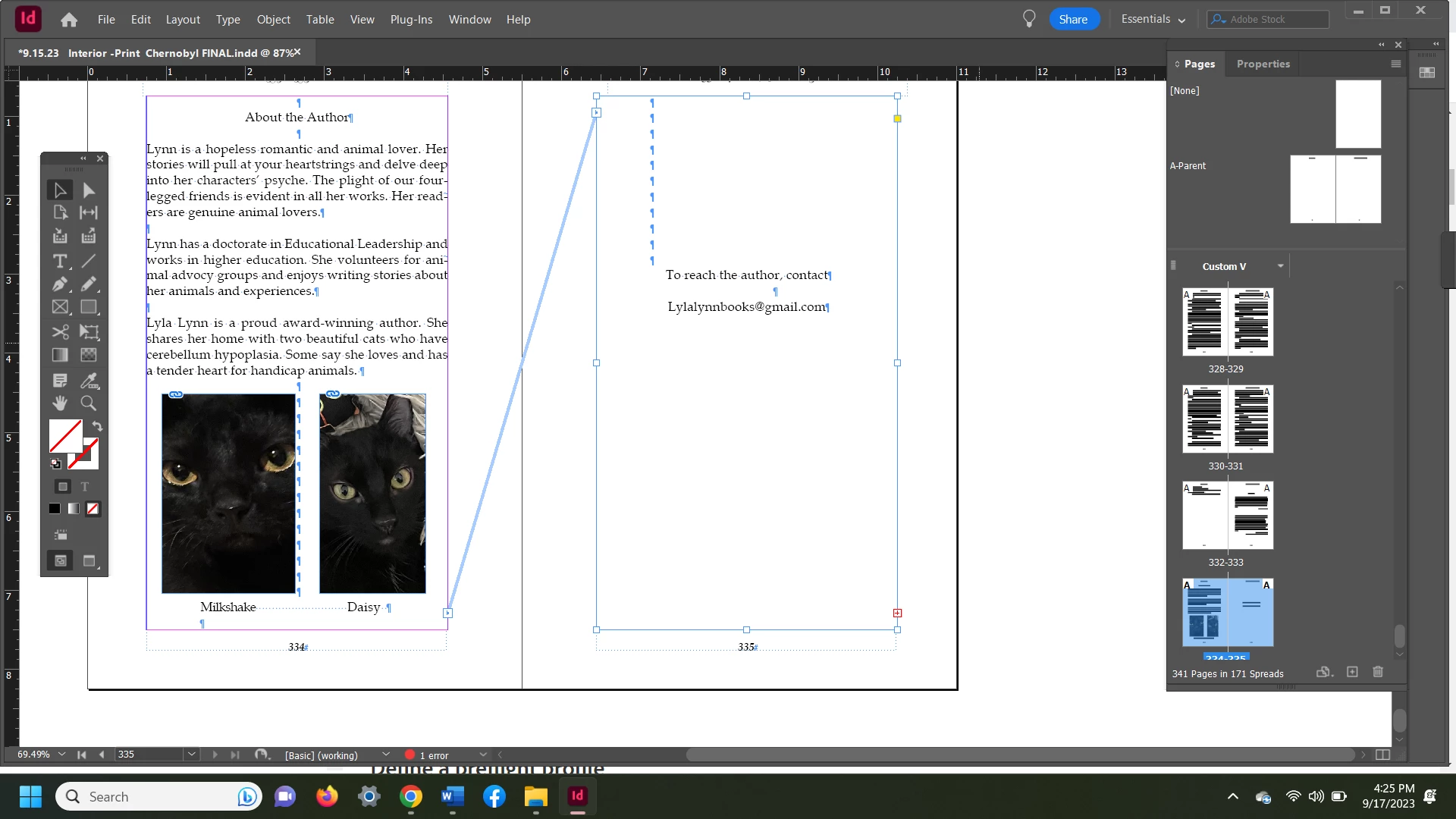 Last page of a document has a red X showing there is overflow text. Preflight confirms it is 69 characters. They are duplicate. I tried to add them to a new page to delete, but it just keeps adding a new page that still has the overflow text symbol.