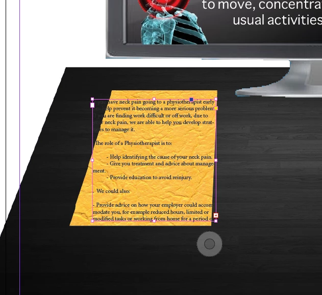 I need to change the perspective of the text on my poster document to make it look like a page lying on a desk, the top of the page smaller (giving the impresion it's further away) to match the paper I've already distorted in photoshop. If you could tell me how to do this with images as well that would be great, then I won't have to distort the image in photoshop before placing it in InDesign.