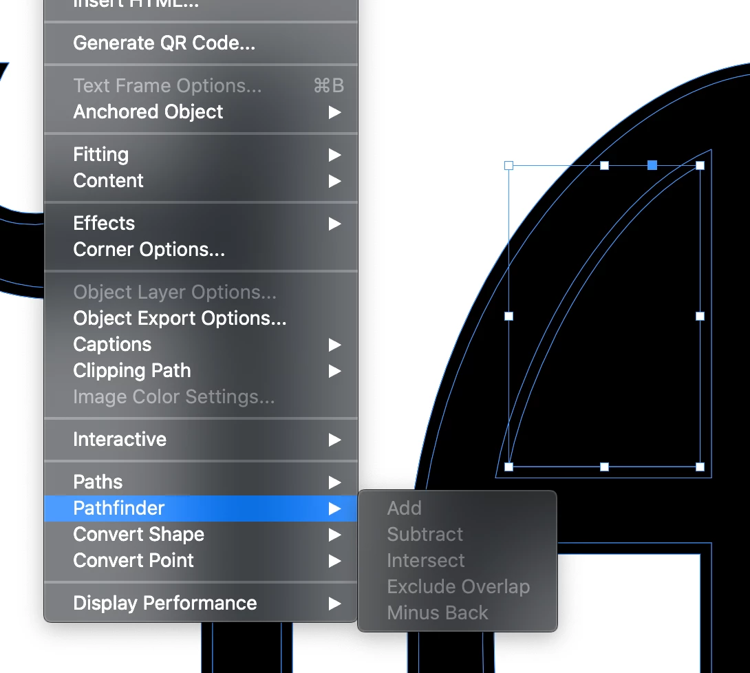 4. Select just the letters with counters with the Direct Tool and choose Object > Paths > Make Compound Path.