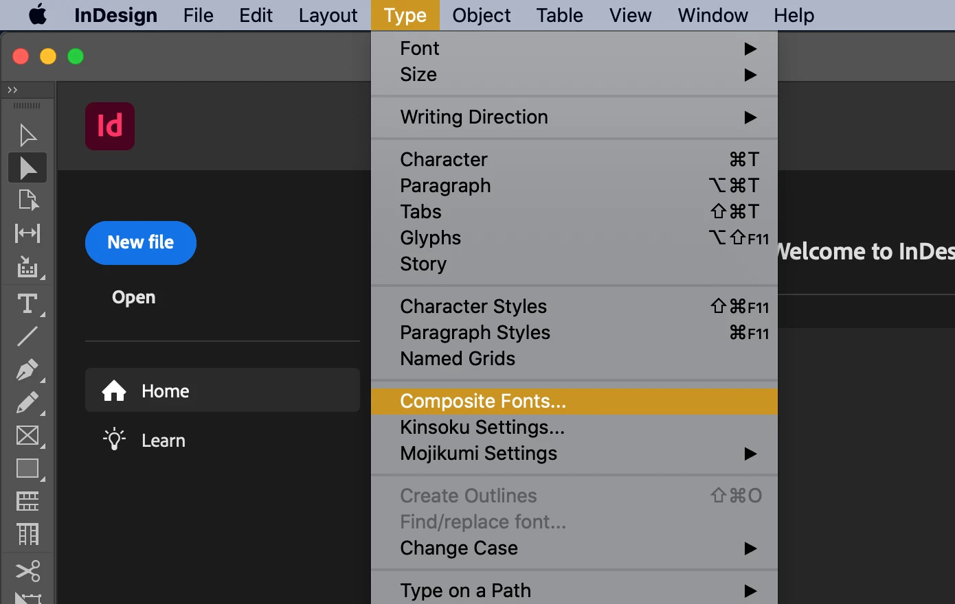 How do I get back the Chinese setting in InDesign 2022, especially the "Composite Font"