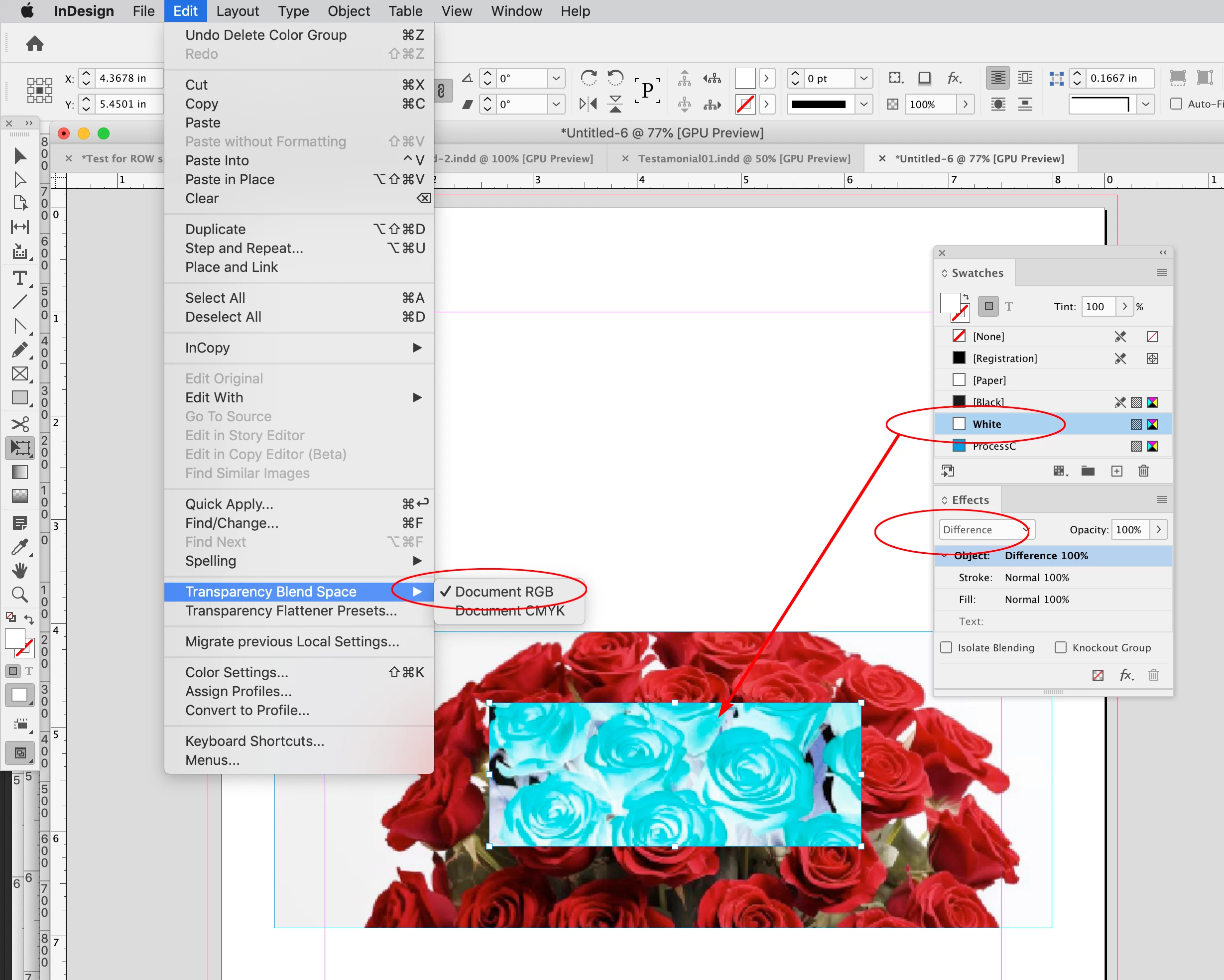 I want to know how do I invert image (negative) inside a rectangle in Indesign. Like in this image: