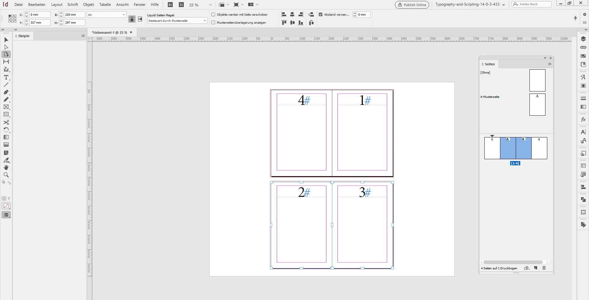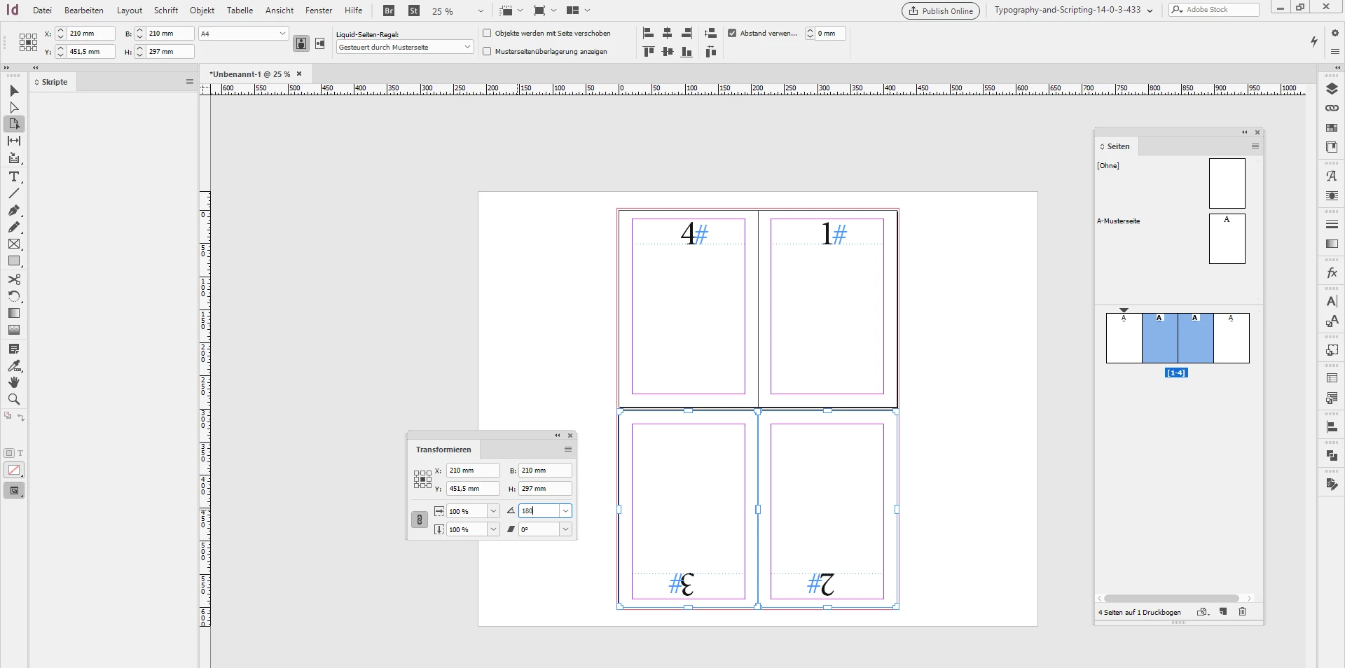 I have a printable shop on Etsy and need to figure out if there is a way to create a four-page spread that is arranged 2x2. I figured out how do to a 4-page spread horizontally and also vertically, but not in a square configuration. I need to do this so that crop marks are preserved so that the end user can cut 4 small pages of the exact same size. Thanks in advance!