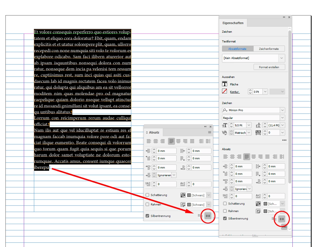 I received a new template for a newsletter in InDesign CC 2015 and the text will only sit on lines. If I try to nudge a text box up or down, the text disappears and will only appear again if it reaches another line. How do I stop this?