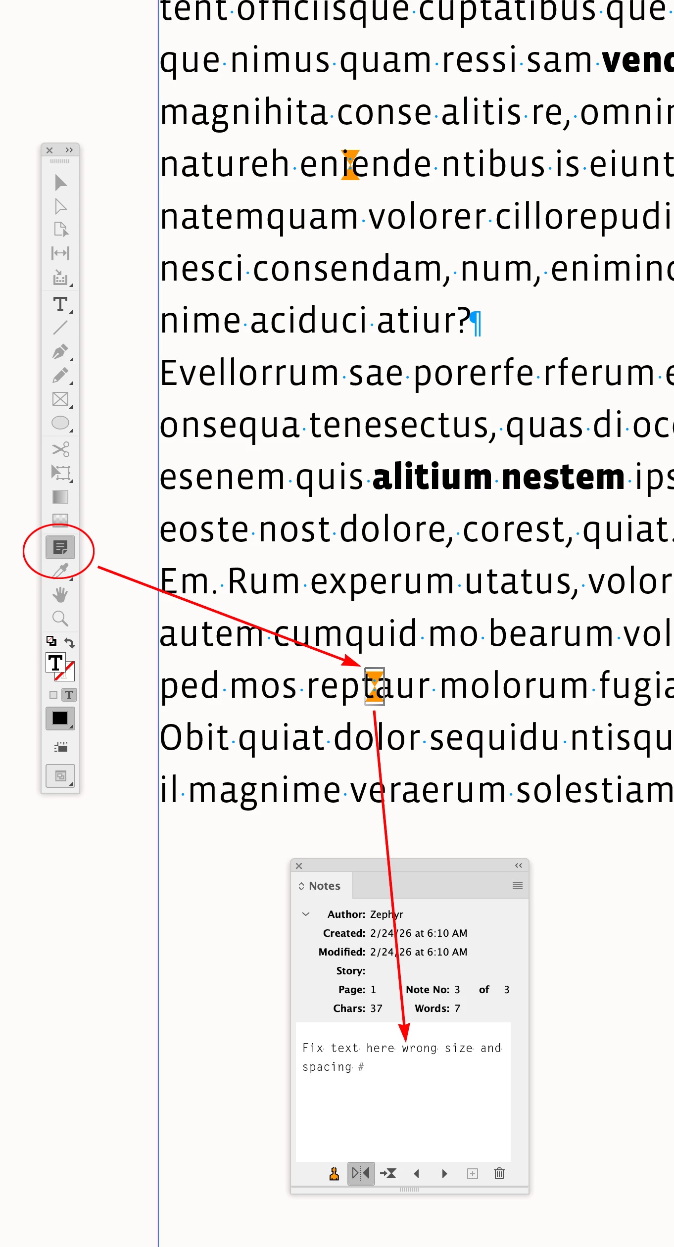 Use the Note tool and click on the note when it is highlighted with a bounding box: