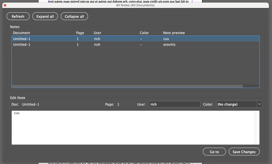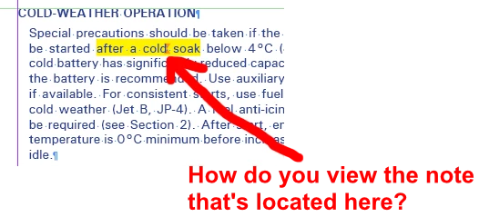 The question is how I directly show the note text from the anchor that appears on-screen.