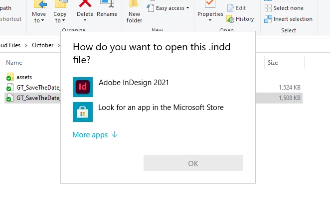 Since the 2021 update, all InDesign files, when double-clicked to open, now bring up a window saying "How do you want to open this .indd file?" From there I click on InDesign and the file opens, but it does this everytime I need to open an InDesign file, unlike the other programs you only have to do that once and you're good to go. Along with that, all InDesign files even after being opened in the new 2021 version do not show the InDesign icon on the file. It's just a blank icon (attached screenshot). I had no issues with this prior to the 2021 update. Is there a preference in the new 2021 InDesign update that needs to be changed or is this something on Adobe's end that neeeds to be fixed?