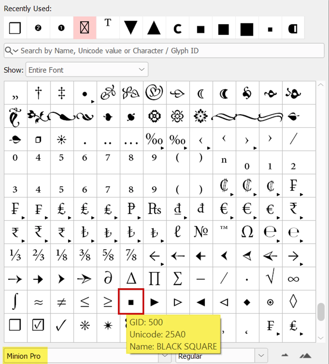 Does anyone know how a dingbat glyph (a square or triangle for example) will be read by assistive technology?