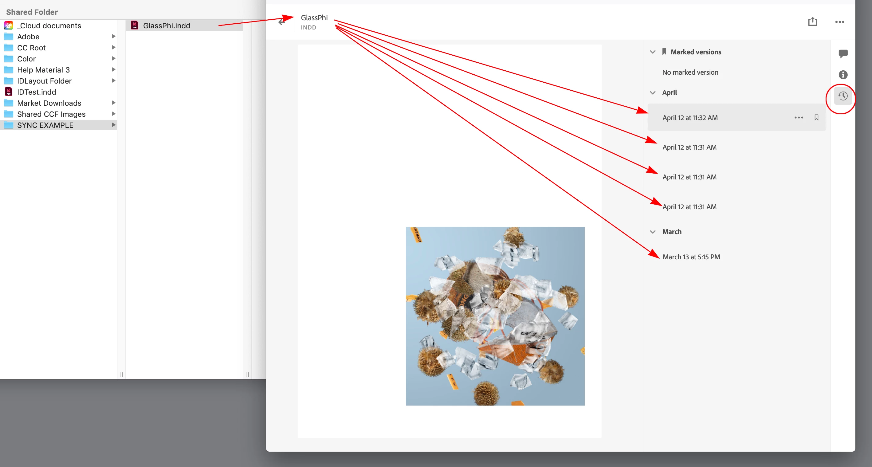 Hi @Phaidon294857876egp , Also for version control you might look at your Creative Cloud Sync folder which stores incremental saves of your documents. Any file you save into your local user>Creative Cloud Files folder will automatically sync to your cloud account. If you right click the file and choose View On Website there is a Timeline option. In this example I can get past saved versions: