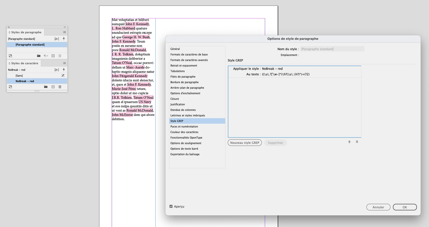 Does anyone know how to prevent InDesign from splitting names that are separated by commas at the end of a line? I’ve tried a few GREP expressions, but they haven’t been entirely effective. Any suggestions?