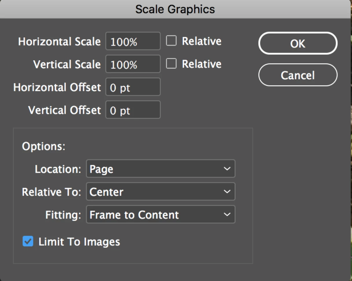 I need the option to change all the images within content frames to 100% scale, at the same time, with the anchor point as the center of the frame. Is there a way to do this in native InDesign, or do I need a script? Thanks!
