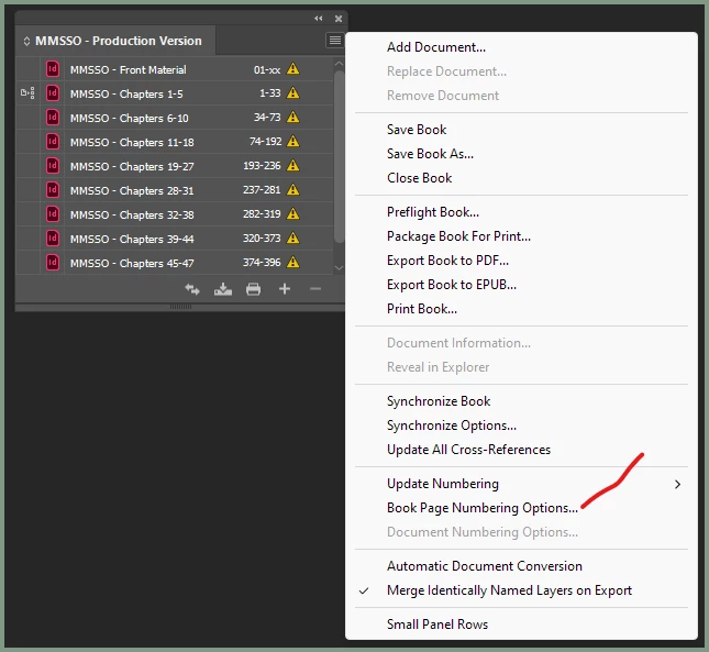 Try as I might, I can't figure out how to get auto-page numbering to work for my book which is composed of multiple files. I want it to start from 1 and go to the last page. It resets to 1 at each file unless I manually enter the starting page number in each file under the Layout menu - which defeats the entire concept of auto-page numbering.