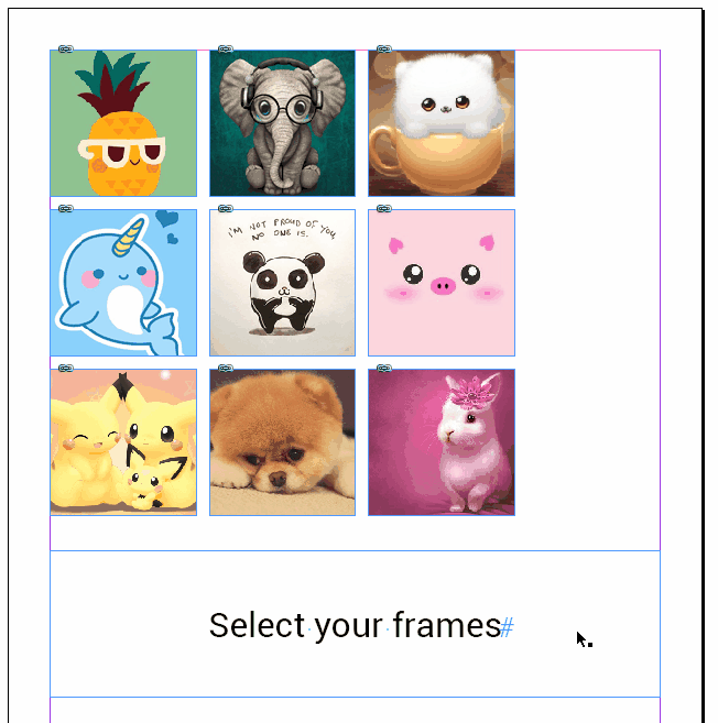 I am working on a document with a grid of frames where each of the frames are set to be like sided squares. I would like to edit the space between them while keeping the form of each frame as a like sided square. Therefore I cannot use the gap tool. Is there any way to edit the spacings in the grid after it has been created and filled with images? I would like to edit all of them at once naturally, not each spacing individually.