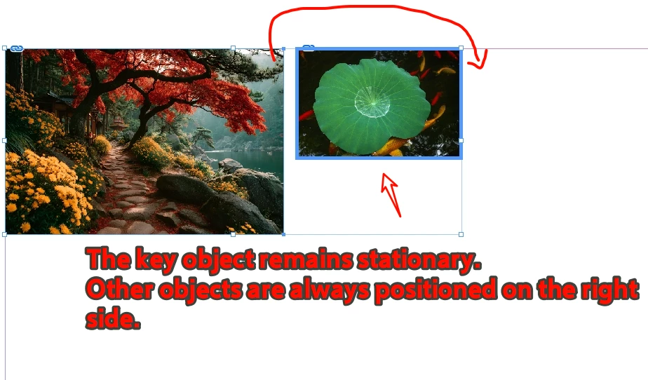 I intend to set sel[j].geometricBounds so that the keyObject remains stationary while the others are arranged to its right.