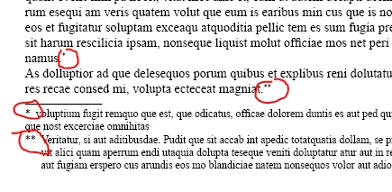 how can i get the TEXT (string) that is displayed in a footnote reference (in the example * and **):