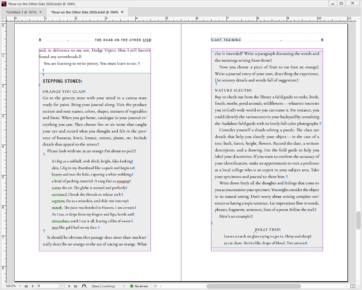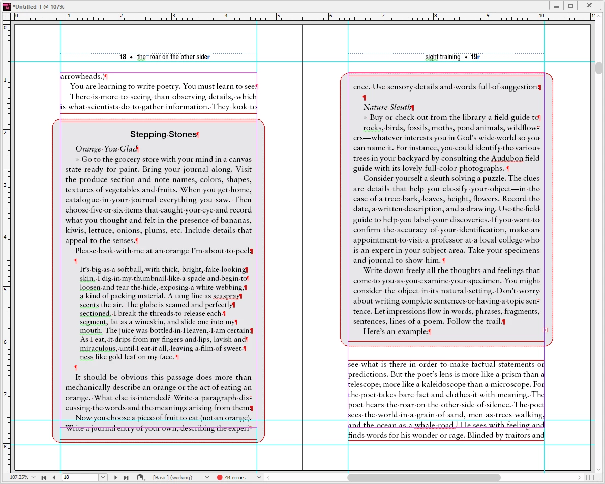 I'm redoing an older book that has a lot of inset boxes. Here's a screenshot of a sample page in the original layout: