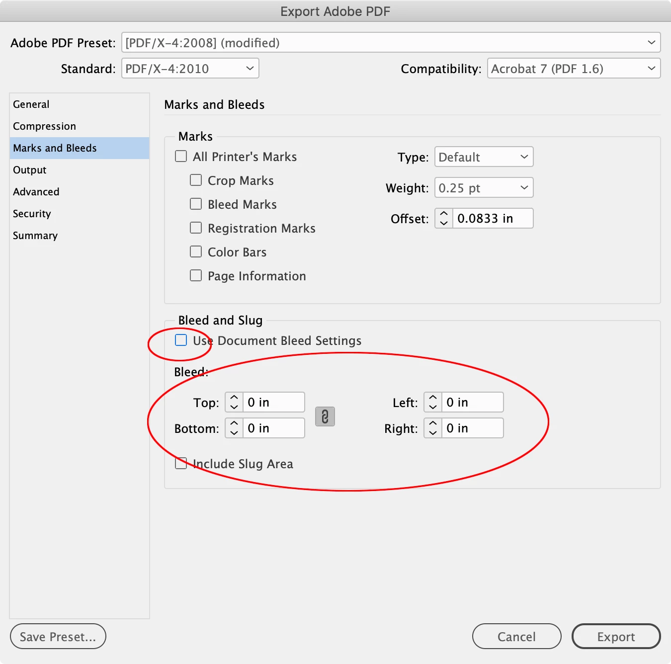 I want to include document bleeds in the exported PDF file without bleed or printer marks. I don't have any marks checked (except for the 'include document bleeds') yet the exported PDF has black line on the spine line. You can see it in the attached sample page. I know they will most likely be trimmed off in the final printed document, but they still bother me. Does anyone know how nd where I need to turn this off? Thank you!