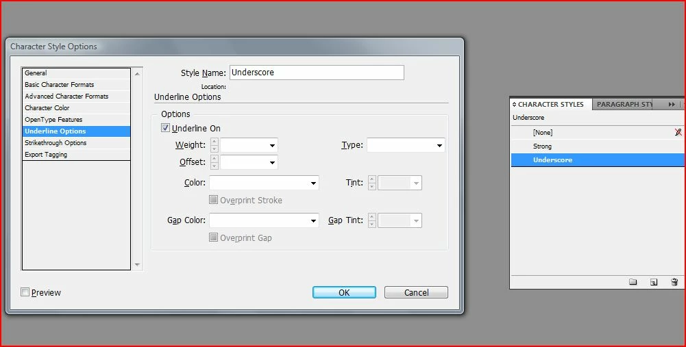 This would be a character style for underscore, which could be (nested) within a Paragraph Style.