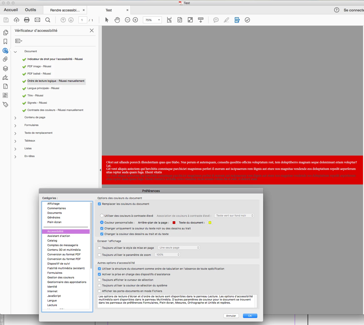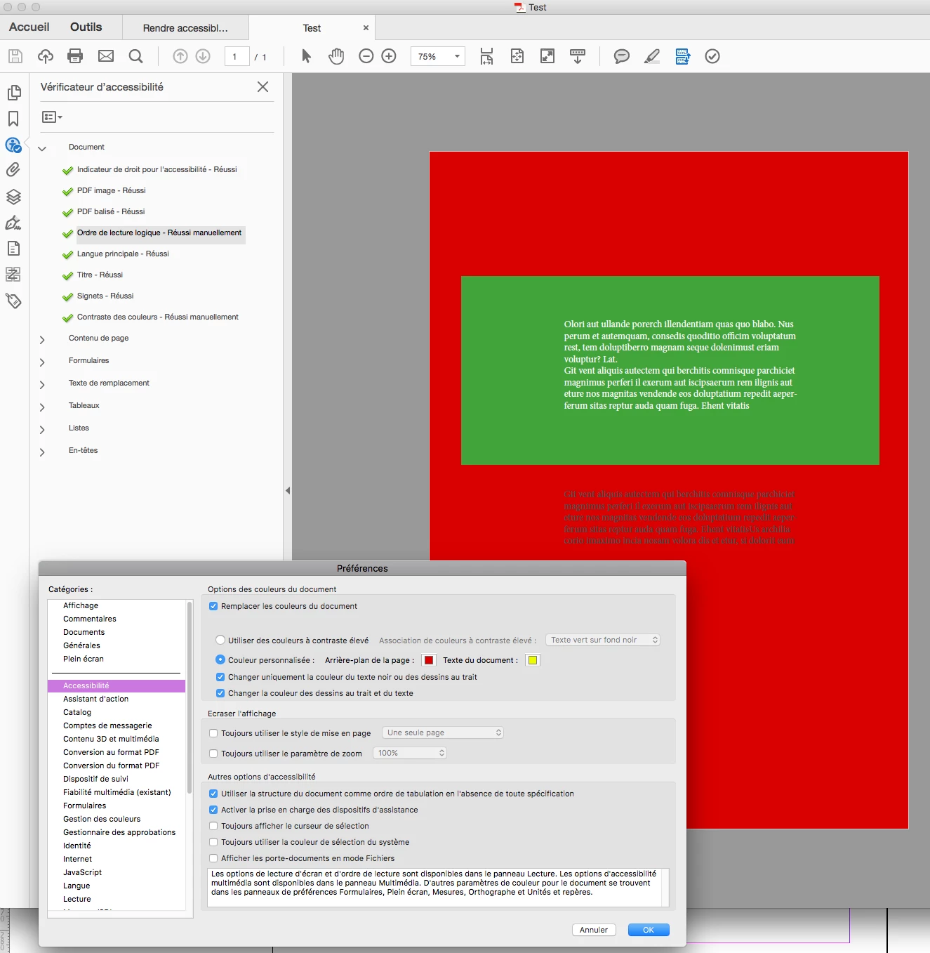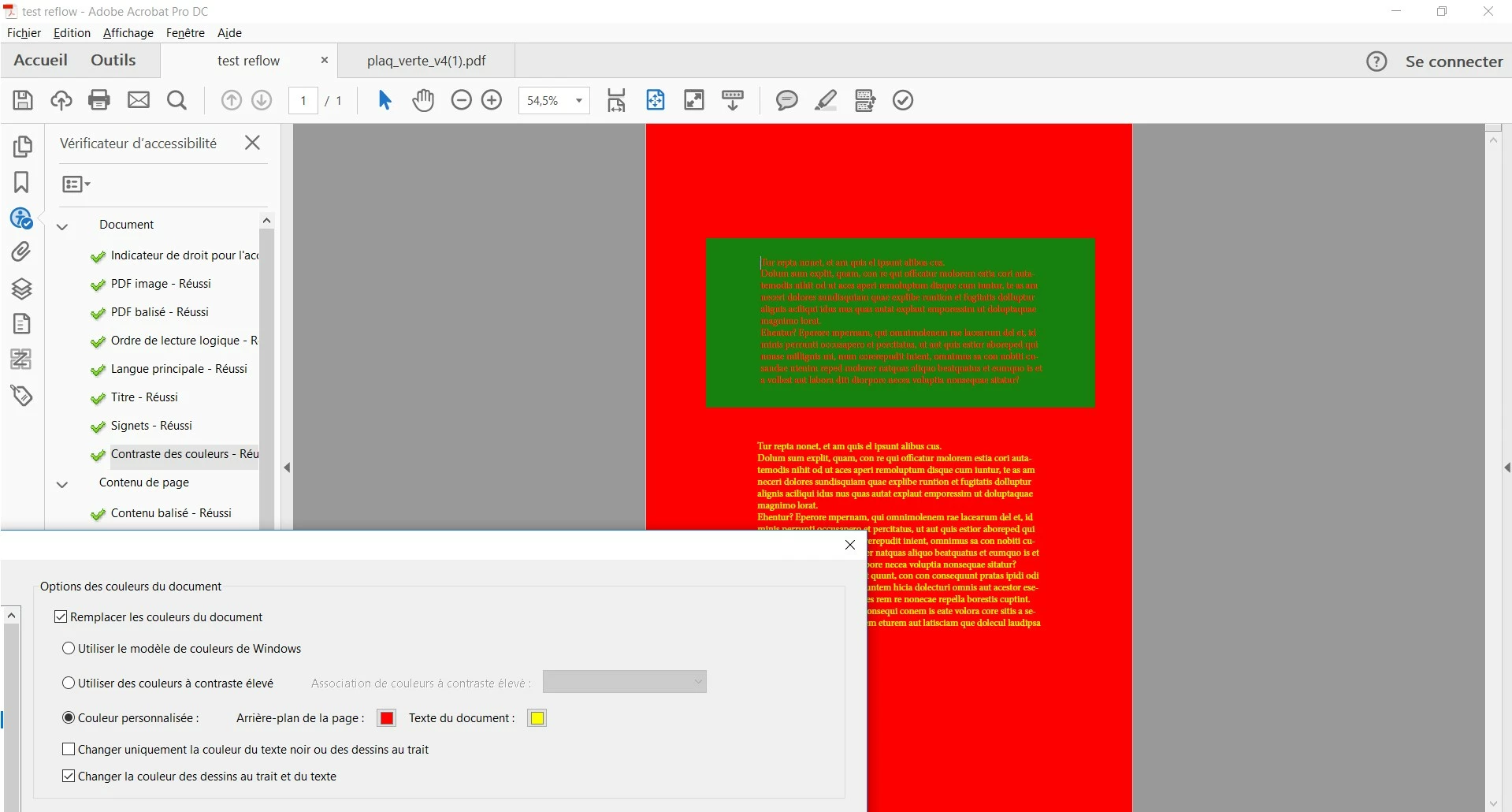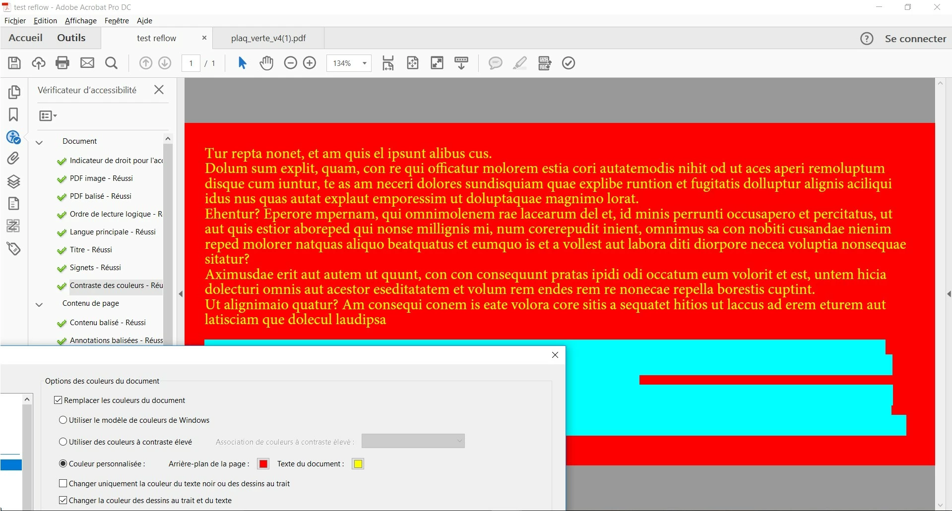 i just give you an exemple where the color doesn't change. But i could give you many examples of bad reflow despite a good construction of my document for tagged pdf (i think).