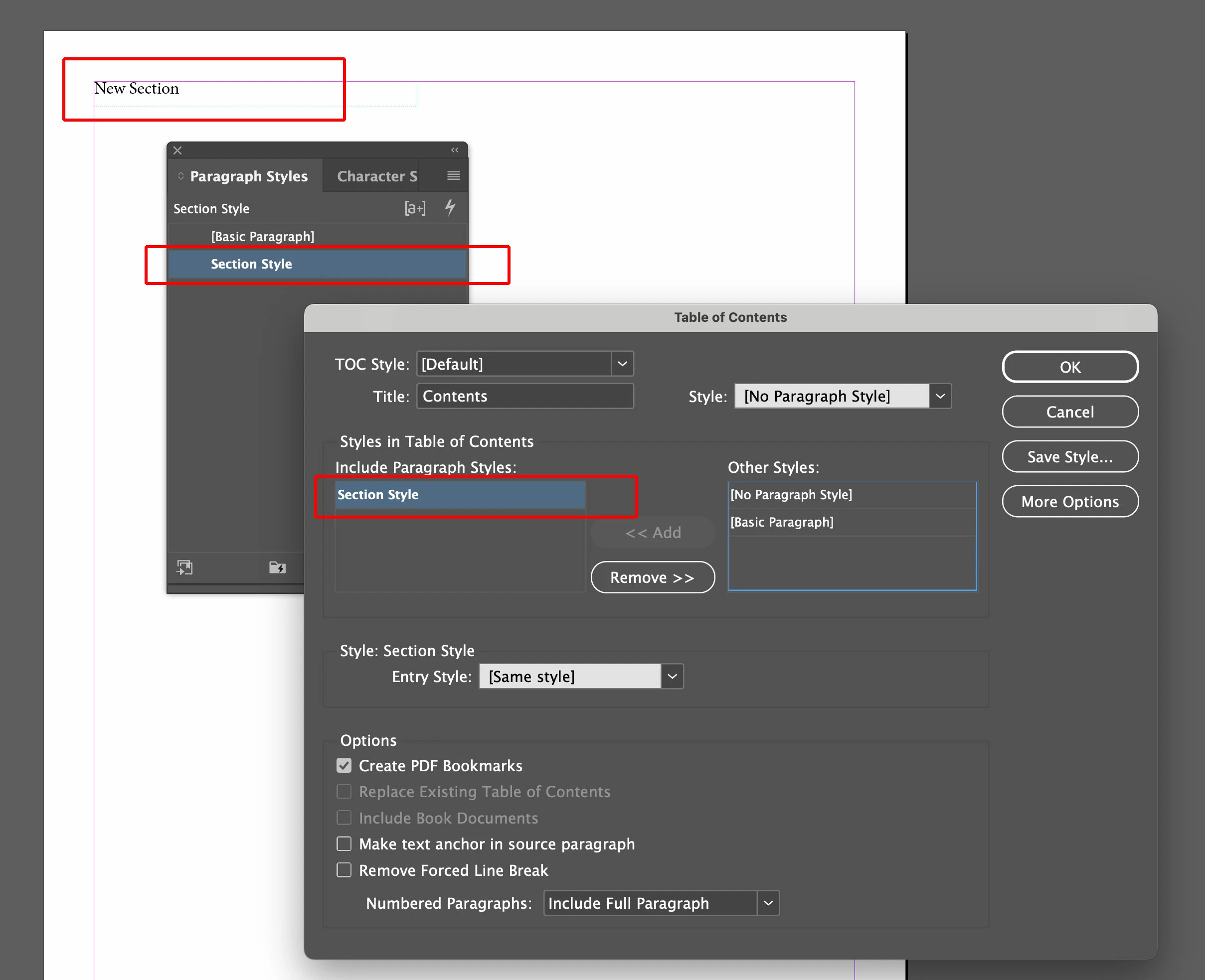 How to link section titles to the Table of Contents in InDesign?