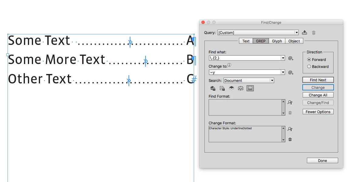 Hi - without using a tab (as I'm using provided text) - is there a way to make a dotted line between each name and letter by simply highlighting the space and pasting ?