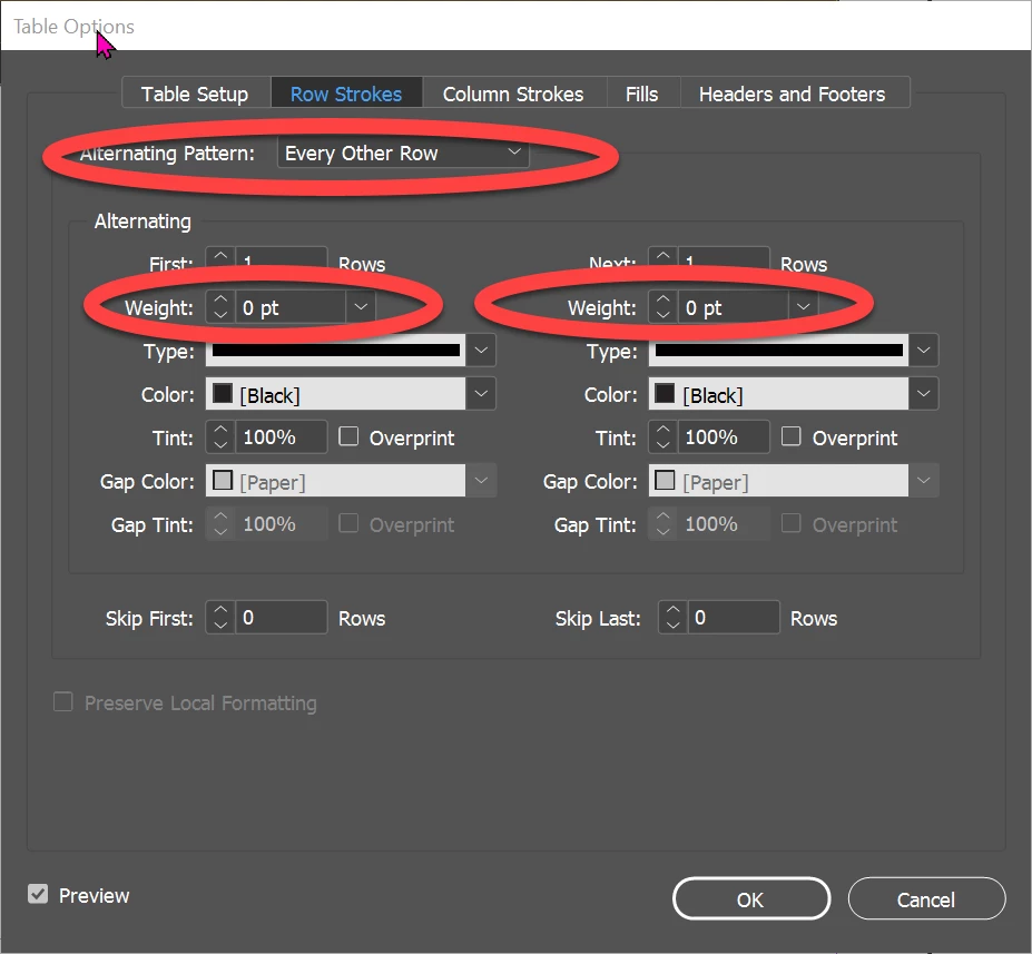 How to make a table's strokes invisible?