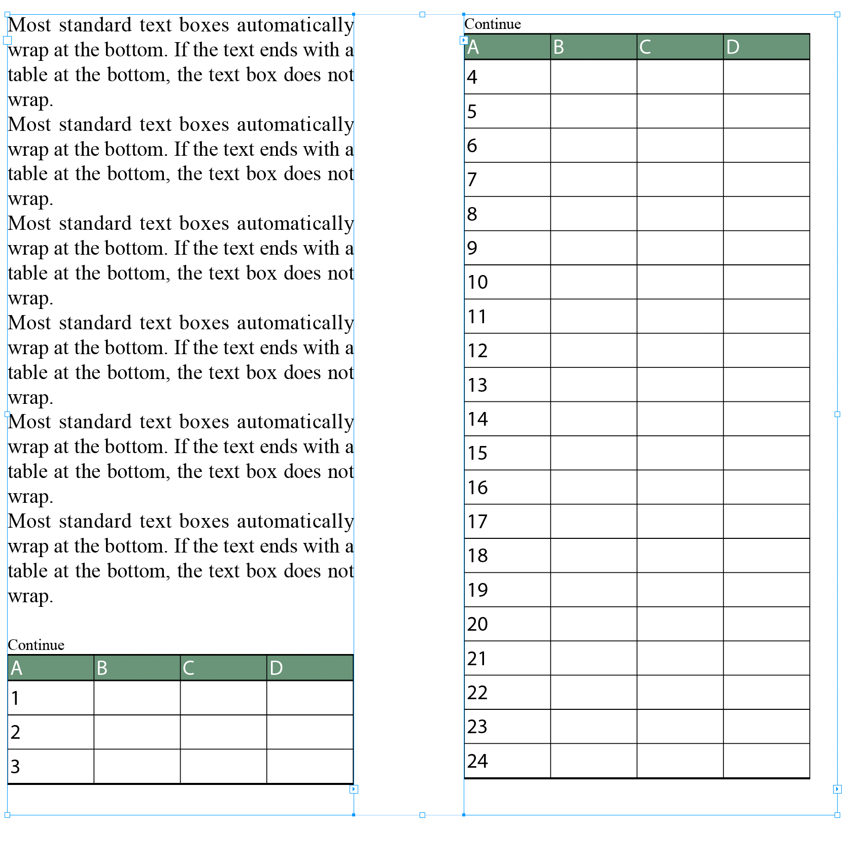 // this text frame might have a table, but not the first part of it