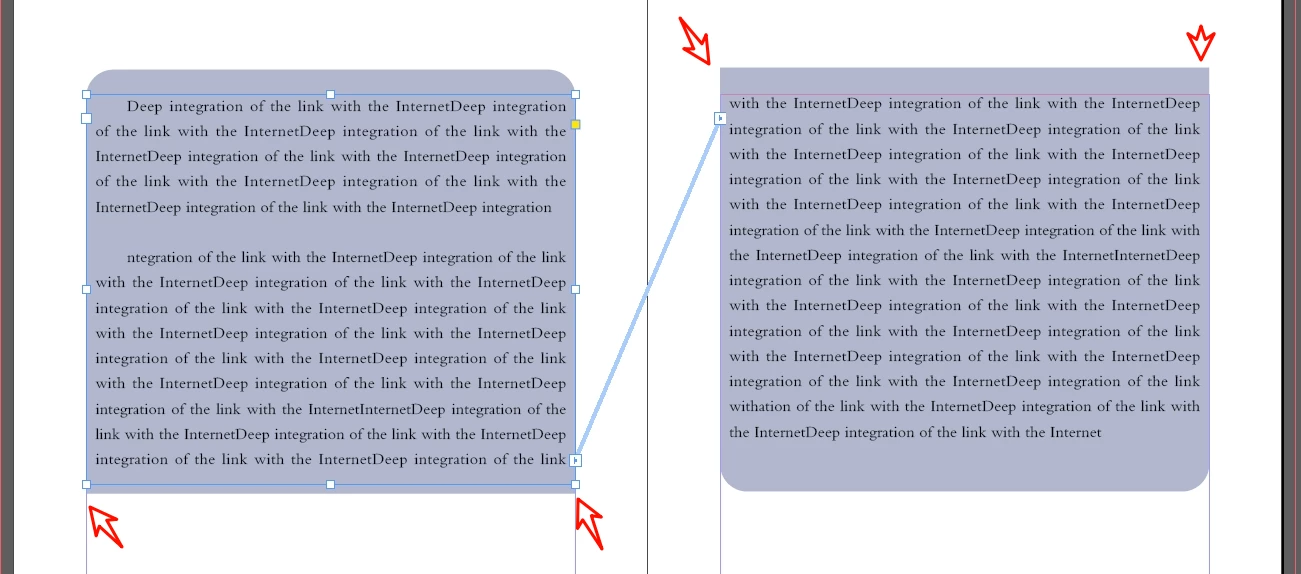 If  you add a return at the end of frame one it will mean you get round corners in the right column.