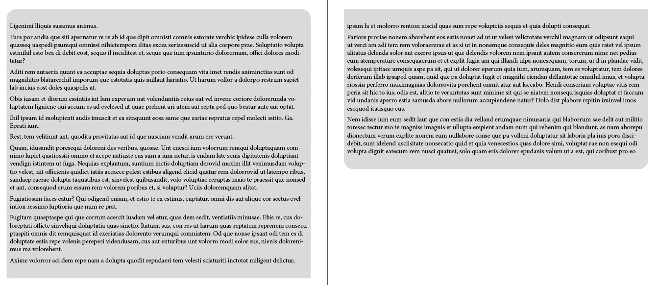 Alternatively you can use paragraph rules instead of shading and turn on “Display Border if Paragraph Splits Across Frames/Columns,” which is what I did in the above example.