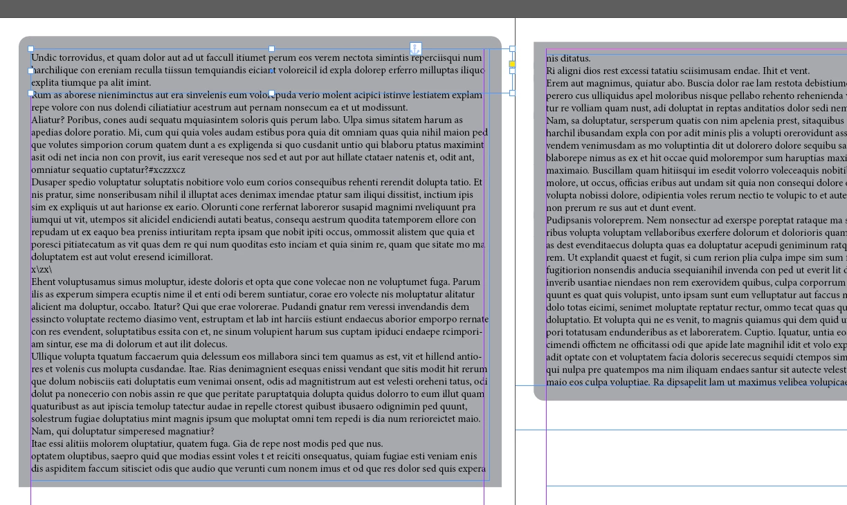 And similarly for the right hand connected page - see if I could anchor an object to the bottom paragraph to align to the top.