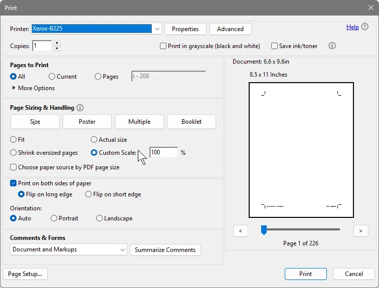 I need to print a book page, where the height of the text must be 17,5 cm and the width 11,5 cm. The space between the text on two pages (when a book is open) must be 3 cm. The margins up, down and on the sides must be 2cm. When I set the text/width in the setups, everything seems ok. But then I convert file into PDF and print it. On the paper the parameters are changed, like now it is 10,5x16 cm, and the space between the text frames on two pages is 4 cm.