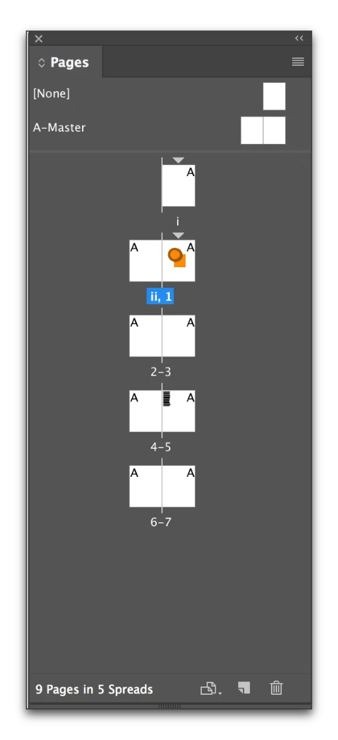 An extra oddity here is this spread shown with three pages in the workspace shows as a 2 page spread in the Pages window. And page 1 (Introduction) should be on the left hand page. What a mess!