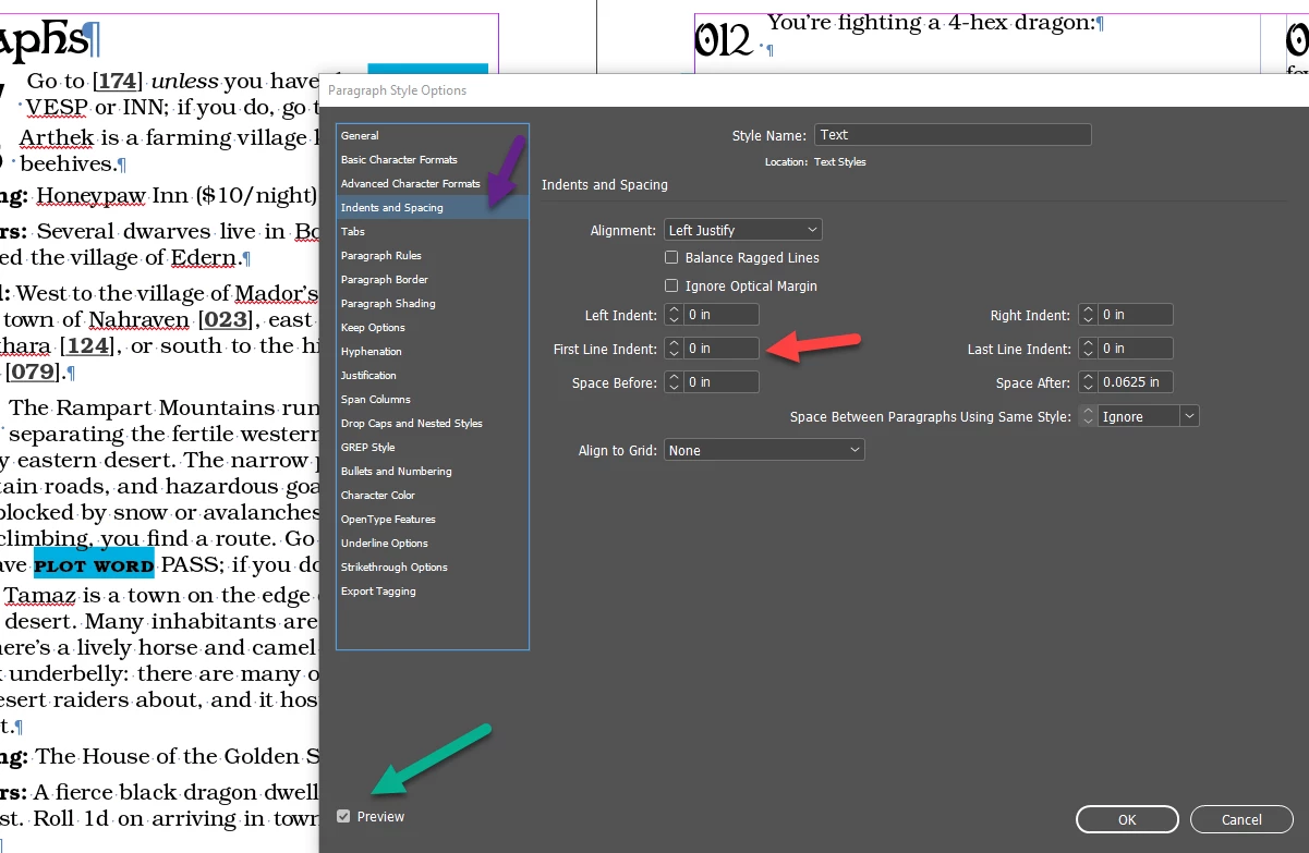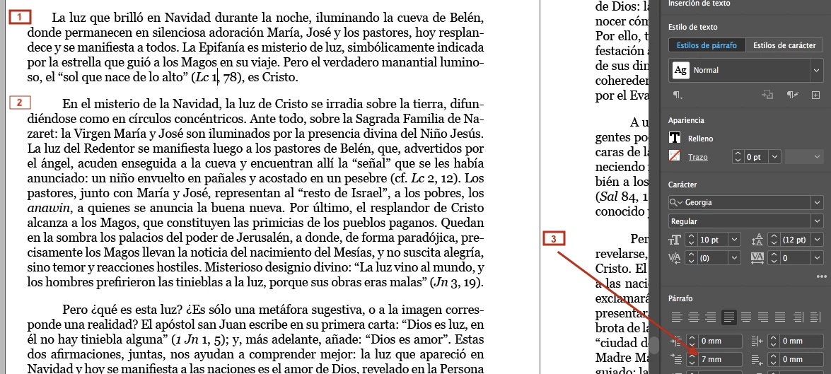 1. This is the new first line ident setting (7 mm) as shows (3). It's applied in this paragrahp because i selected it at applied one more time the style.