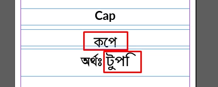 The language used in the data sheet is Bengali, if I open the data sheet, the words are okay, but inside InDesign, the combined letters order is misplaced despite of using the same font!