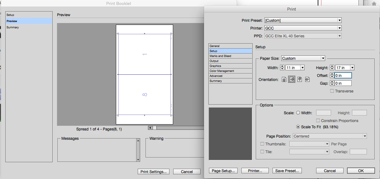 I am trying to print a booklet from InDesign CC 2017. Set up custom page size and it is printing much smaller
